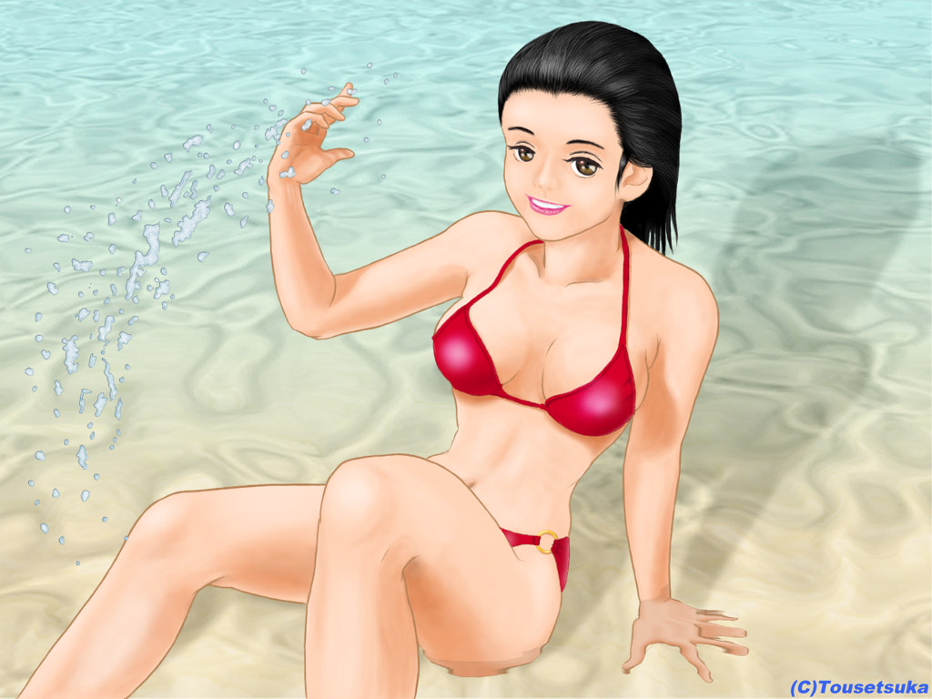 一見して、肌色の美しさに目を奪われますね。今回はエアブラシでグラデをつけるのではなく、やや筆っぽいタッチを狙ってみたとのことなんですが、かなりうまくその効果が出ていると思います。私はいかにもCGっぽい絵より、こういう方が好みだなあ。