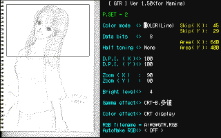 プレスキャンした画像から範囲を指定してのスキャニングが出来ますが、基本的にPC9801の640x400ピクセルの画面に合わせた画像を生成する目的のソフトですので、それ以上の範囲をスキャニングすることは出来ません。